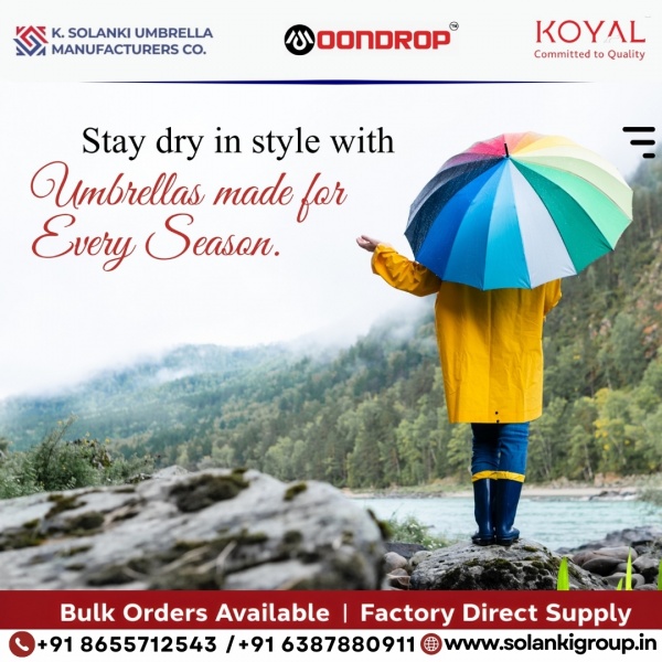 K. Solanki Umbrella Manufacturers (KSUM & Moondrop) offers premium quality umbrellas including long, two-fold, three-fold, beach and garden umbrellas. Factory direct supply and bulk wholesale options available across India. Mail Id.: ksolankiumbrella@gmail.com. For more information visit on site.: https://solankigroup.in Call now. 8655712543