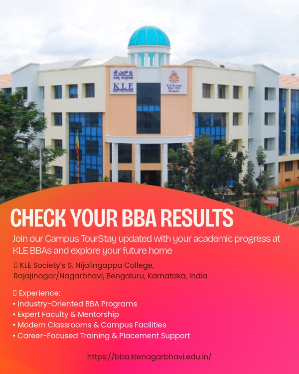 View the latest KLE BBA results and semester exam updates for KLE Society’s BBA College in Nagarbhavi, Bengaluru. Contact for exam info and support.